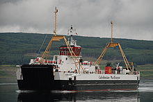 MV Coruisk is a 65 m (213 ft) "sheltered water vessel", operating on the Oban to Craignure route in summer, and relieving on the Clyde in winter.[17] Her design allows her to make the crossing in reverse when sea conditions allow.[17]