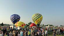 The California Balloon Invitational is a hot air balloon race in California held on the third Saturday of July. Approximately 20 hot air balloons participate in a hare-and-hounds hot air balloon race.[27]