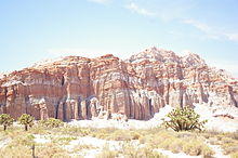 The character of the highway changes as it leaves California City with the last interchange located at California City Boulevard. Now a divided highway with at-grade intersections, departs the corridor of the main Southern Pacific Line, to follow the crest of the forming Sierra Nevada mountains. The route continues to follow a branch line of the Southern Pacific used as a connector for the Trona Railway. The main line of the railroad proceeds towards the Central Valley via Tehachapi Pass. Though SR 14 heads away from the pass, the highway has views of the mountains and the Tehachapi Pass Wind Farm. The scenery also changes, as the highway departs the Mojave Desert and crosses Red Rock Canyon State Park. Traffic counts drop dramatically as the highway becomes more rural, with an AADT of 3,200 vehicles at the northern terminus.[7] SR 14 continues north toward US 395 in Inyokern, much of its routing as an expressway. Towards its northern terminus, SR 14 runs briefly concurrently with SR 178. At its northern terminus, SR 14 merges with US 395 as it turns into an expressway heading north to Bishop. As US 395 the route continues to follow the crest of the Sierra Nevada, serving Owens Valley, Mammoth Mountain, Yosemite National Park and Mono Lake.[10]