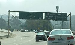 Planners originally intended for it to connect to the Hollywood Freeway with Route 101 near the Vermont Avenue interchange, but community opposition killed the project by the 1960s (which is why there is a huge median around the cancelled interchange today). The Glendale Freeway offers stunning vistas of the eastern San Fernando Valley, the Verdugo Mountains, the Crescenta Valley, and the San Gabriel Mountains.[17]