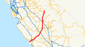 Length | 185.594 mi[1] (298.685 km) (plus about 6.5 mi (10.5 km) on SR 46, and does not include portion in Yosemite National Park) | |||