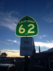 State Route 62 (SR 62) is a state highway in the U.S. state of California that cuts across the Little San Bernardino Mountains in Riverside and San Bernardino counties. It runs from Interstate 10 near White Water to the Arizona state line, passing through the city of Twentynine Palms and along the northern boundary of the Joshua Tree National Park.