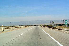 State Route 86 (SR 86) is a north–south state highway in the U.S. State of California that connects the Imperial and Coachella valleys in the southeastern desert region of the state. It runs from State Route 111 near the Mexican border crossing at Calexico north through the Imperial Valley via El Centro and Brawley, and around the west side of the Salton Sea into the Coachella Valley. It then goes through Coachella before terminating at Interstate 10 in Indio.