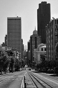 View from the top of California Street Looking towards the financial district with the Bay Bridge in the background | |