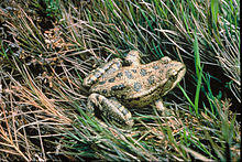 The California red-legged frog (Rana draytonii) is a species of frog found in California (USA) and northern Baja California (Mexico). It was formerly considered a subspecies of the northern red-legged frog (Rana aurora).[2] The frog is an IUCN vulnerable species, and a federally listed threatened species of the United States, and is protected by law.[1][3]