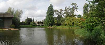 Located in Lisbon (civil parish of Avenidas Novas), the Foundation’s premises opened in 1969 and were designed by Ruy Athouguia, Pedro Cid, and Alberto Pessoa. In addition to Foundation offices, the complex includes an auditorium, exhibition space, congress facilities, and a large building designed specifically to house and display Museum and art library. These are set in Gulbenkian Park, which was designed by Ribeiro Telles. In 1983, the Modern Art Centre was added at one end of the park.
