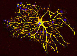 Various glial cells are also associated with the calyx of Held. Two types of glial cells surround the calyx: astrocytes and NG2 glial cells. The astrocytes express glutamate transporters to remove glutamate from the synapse. This is the only known mechanism for removal of glutamate from the synapse. The NG2 glial cells express AMPA receptors.[11]