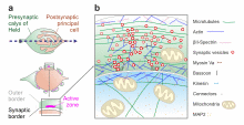 - ^ Borst, J. G. G.; Soria Van Hoeve, J. (2012). "The Calyx of Held Synapse: From Model Synapse to Auditory Relay". Annual Review of Physiology. 74: 199–224. doi:10.1146/annurev-physiol-020911-153236. PMID 22035348.