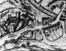 The castle was held by the Norman kings until the civil war of the Anarchy broke out in 1139.[6] Castles played a key role in the conflict between the Empress Matilda and King Stephen, and in 1143 Geoffrey de Mandeville, a supporter of the Empress, attacked Cambridge; the town was raided and the castle temporarily captured.[6] Stephen responded with a counter-attack, forcing Geoffrey to retreat into the Fens and retaking the castle.[7] Cambridge Castle remained exposed, however, and Stephen decided to build a supporting fortification at Burwell to provide additional protection.[8] Geoffrey died attacking Burwell Castle the following year, leaving Cambridge Castle secure.[8]