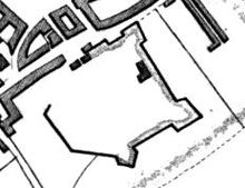 Cambridge Castle remained only a basic fortification until 1284 when Edward I decided to undertake major expansion works.[14] Over the next 14 years the king spent at least £2,630 on rebuilding the castle in stone.[14][nb 3] Edward's castle was four-sided, with circular towers at each corner, guarded by a gatehouse and a barbican.[16] A circular stone keep was built on the motte.[16] The result was a "major fortress in the latest fashion", albeit never quite completed.[16] Edward stayed at the castle for two nights in 1294.[15]