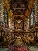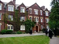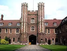 Examples of notable buildings include King's College Chapel,[46] the history faculty building[47] designed by James Stirling; and the Cripps Building at St John's College.[48] The brickwork of several of the colleges is also notable: Queens' College contains "some of the earliest patterned brickwork in the country"[49] and the brick walls of St John's College provide examples of English bond, Flemish bond and Running bond.[50]