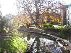 The university occupies a central location within the city of Cambridge, with the students taking up a significant proportion (nearly 20%) of the town's population and heavily affecting the age structure.[44] Most of the older colleges are situated nearby the city centre and river Cam, along which it is traditional to punt to appreciate the buildings and surroundings.[45]