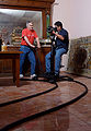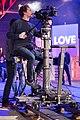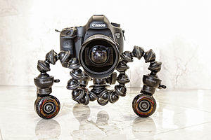 A camera dolly is a wheeled cart or similar device used in filmmaking and television production to create smooth horizontal camera movements. The camera is mounted to the dolly and the camera operator and focus puller or camera assistant usually ride on the dolly to push the dolly back and forth. The camera dolly is generally used to produce images which involve moving the camera toward or away from a subject while a take is being recorded, a technique known as a "dolly shot." The dolly grip is the dedicated technician trained to operate the dolly by manually pushing it back and forth.[1]