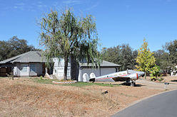 Cameron Airpark Estate's wide streets double as taxiways leading from the residences to the adjacent airport. Many homes have aircraft hangars (oversized garages) that house personal aircraft, allowing residents to commute from home to work entirely by air. The adjoining airport (Cameron Airpark, O61) is a public airport and of economic importance to the surrounding region.