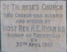 St Therese's Catholic Church was officially opened on 30 April 1961 by Hugh Edward Ryan, Bishop of Townsville.[22]