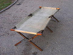 A camp bed, or cot in North America, is a small portable, lightweight bed used in situations where larger permanent beds cannot be used. The main advantage of this bed is its portability and compactness. Camp beds are generally used by armies or organizations, in tourism, and in emergency situations when there is a need to quickly provide accommodation for victims.