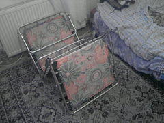 An aluminum folding bed, typical for many Eastern Bloc countries