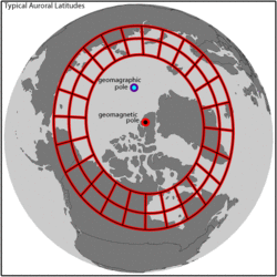 The interaction is significant at sub-auroral, auroral, and polar latitudes where large regions of the magnetosphere are mapped along the magnetic field into relatively small regions of the ionosphere, and where the magnetospheric dynamics are controlled primarily by the plasma rather than the magnetic field. This organization is actually by magnetic rather than by geographic latitude (see Baker and Wing,[1] and references therein for a description of magnetic vs. geographic coordinates). The aurora, for example, is most frequently observed at magnetic latitudes between roughly 60 and 80 degrees (see Eather[2]). In the northern hemisphere Canada has the largest land mass at the magnetic latitudes. As a consequence of this so-called "Canadian-advantage", Canada has been a world-leader in ground-based auroral and ionospheric research for decades.
