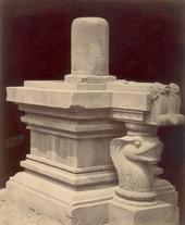 Lingas are implanted in a flat square base with a hole in it, called a yoni, symbolic of the womb and also represents Parvati, Shiva's consort. A yoni usually has a kind of spout, usually decorated with nāga, to help channeled and collects the liquids poured upon linga-yoni during Hindu ritual. As a religious symbol, the function of the linga is primarily that of worship and ritual. Oldest remains of linga-yoni can be found in Dieng temples from earlier period circa 7th century. Originally each temples might have a complete pair of linga-yoni unity. However, most of the times, the linga is missing.