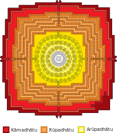 - Svarloka (in Buddhism: Arupadhatu), the highest and holiest realm of gods, also known as svargaloka. The inner courtyard and the roof of each temples is symbolized the realm of svarloka. The roof of Hindu structure usually crowned with ratna (sanskrit: jewel) or vajra, or in eastern Java period, crowned by cube structure. While stupa or dagoba cylindrical structure served as the pinnacle of Buddhist ones.