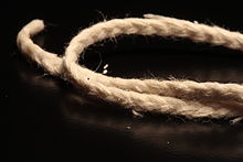 Candle wicks are normally made out of braided cotton.[1] Wicks are sometimes braided flat, so that as they burn they also curl back into the flame, thus making them self-consuming. Prior to the introduction of these wicks special scissors were used to trim the excess wick without extinguishing the flame.