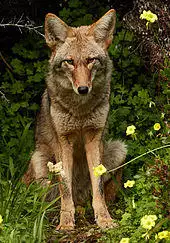 California Valley coyote C. l. ochropus | von Eschscholtz, 1829 | Similar to C. l. latrans and C. l. lestes, but smaller, darker, more brightly colored, it has larger ears and smaller skull and teeth.[63] | California west of the Sierra Nevada [64] | ![]() | |