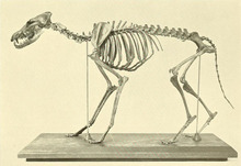 Xiaoming Wang and Richard H. Tedford, one of the foremost authorities on carnivore evolution,[43] proposed that the genus Canis was the descendant of the coyote-like Eucyon davisi and its remains first appeared in the Miocene 6 million years ago (Mya) in the southwestern US and Mexico. By the Pliocene (5 Mya), the larger Canis lepophagus[44] appeared in the same region and by the early Pleistocene (1 Mya) C. latrans (the coyote) was in existence. They proposed that the progression from Eucyon davisi to C. lepophagus to the coyote was linear evolution.[45] Additionally, C. latrans and C. aureus are closely related to C. edwardii, a species that appeared earliest spanning the mid-Blancan (late Pliocene) to the close of the Irvingtonian (late Pleistocene), and coyote remains indistinguishable from C. latrans were contemporaneous with C. edwardii in North America.[46] Johnston describes C. lepophagus as having a more slender skull and skeleton than the modern coyote.[47] Ronald Nowak found that the early populations had small, delicate, narrowly proportioned skulls that resemble small coyotes and appear to be ancestral to C. latrans.[48]