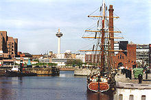 The dock was originally the site of the Gut, the entrance to the Dry Dock which was later to become Canning Dock.[4] Canning Half Tide Dock was built by Jesse Hartley between 1842 and 1844, also opening in 1844.[4][5]