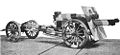 The Mle 1915 was a conventional design with a hydro-pneumatic recoil system mounted under the barrel, a gun shield to protect the crew and a box carriage with wooden wheels. It used an interrupted-screw breech with separate-loading ammunition; the shell being loaded first followed by the proper amount of propellant in a brass cartridge case. A loading tray was hinged to the left side of the cradle. It was swung into position after the breech had opened to hold the shell before it was pushed into the chamber, which had a catch to hold the shell in place until it could be rammed, but had to be moved out of the way before the breech could be closed for firing. It could be towed by a team of eight horses if a two-wheeled limber was placed under the trail and the barrel pulled back along the trail to move the center of gravity towards the limber. For (slow) motor-traction no limber was necessary and the trail was hooked directly to the tractor.[2]