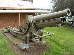 Both the M1917 and M1918 howitzers were upgraded with air brakes, new metal wheels and pneumatic tires during the interwar period and remained the standard American heavy howitzers until superseded by the 155 mm howitzer M1 beginning in late 1942. They saw limited use with both U.S. Army and Marine artillery units while shortages of the 155 mm howitzer M1 were resolved.[23][24]
