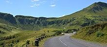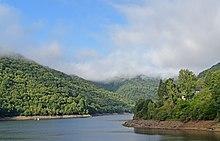 The principal rivers are the Alagnon, which is tributary to the Allier; the Celle and Truyère, tributary to the Lot; and the Cère and Rhue, tributary to the Dordogne.[1] At an elevation of 250 meters (820 ft) above sea level, the low point of the province lies in the Lot valley. The Truyère valley skirts the Planèze on the south and divides it from the Monts d'Aubrac, whose foothills include the thermal springs of Chaudesaigues. The western area of the department consists of grassy plateaus and river valleys.[2]