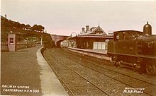 Canterbury is located on the Sydenham to Bankstown Railway which was opened as far as Belmore on 1 February 1895 the same date on which the station was opened.[3][4] The line had its origins in Railway Commissioner Goodchap's 1882 recommendation that an additional line was needed between Newtown and Liverpool to relieve traffic on the Southern Line and to encourage agriculture and suburban settlement. Lobbying by local interest groups and land speculators achieved Parliamentary approval by 1890 and construction commenced in 1892. The most important stations on the line, Belmore, Canterbury and Marrickville, were built with impressive near-identical brick buildings, the other intermediate stations (Campsie, Dulwich Hill and Hurlstone Park) receiving more modest timber buildings (later replaced), possibly reflecting economies of the depression of the 1890s. The depression suppressed the profitability of the line and the extension to Liverpool did not proceed. However, suburban development followed in the early twentieth century, particularly during the interwar period when many War Service homes were built west of Canterbury. The line was extended to Bankstown in 1909 (and then to Regents Park in 1928, making it part of a loop line through Lidcombe), its justification by then being the servicing of suburban development.[2]