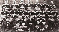 In 1916, the Bulldogs went undefeated, beat Massillon 24–0, and were generally recognized as the professional champions, not only of Ohio, but also of the country. The average attendance for a game prior to Thorpe's signing was 1,500. That soon rose to 6,000 and eventually reached 8,000 spectators, which was the capacity of Canton's League Park. Thorpe would remain the chief attendance draw in professional football until Red Grange entered the game in 1925.[12] Because Thorpe was able to draw big crowds to Canton for games, Cusack was able to put together a financially stable squad that included several former All-Americans, including Cub Buck, who also coached at Carleton College at the time.[13]