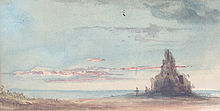 Bernard Moitessier made two significant voyages round the Horn; once with his wife Françoise, described in Cape Horn: The Logical Route,[52] and once single-handed. His book The Long Way tells the story of this latter voyage, and of a peaceful night-time passage of the Horn: "The little cloud underneath the moon has moved to the right. I look... there it is, so close, less than 10 miles (16 km) away and right under the moon. And nothing remains but the sky and the moon playing with the Horn. I look. I can hardly believe it. So small and so huge. A hillock, pale and tender in the moonlight; a colossal rock, hard as diamond."[53]