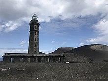 Between September 16 and 27, 1957, 200 earthquakes of intensity V (Moderate) on the Mercalli scale were registered.[1] On September 23, the ocean waters off the coast of Ponte dos Capelinhos began to boil, and the first vapours were witnessed around 6:30 a.m. one kilometre northwest of the lighthouse.[1] A constant tremor could be sensed, at times reaching a Level IV on the Mercalli scale (MM-31).[1] Three days later, the activity increased; black ash (to about 1400 m) and water vapour (to about 4000 m) rose west of the two ilhéus (English: islets) off the coast. On September 27, beginning at about 6:45 in the morning, a submarine eruption, 300 m from Ponta dos Capelinhos (100 m from the Ilhéus dos Capelinhos) began. Whale spotters at Costado da Nau, a few meters above the Capelinhos lighthouse, saw the ocean churning to the west and alerted the lighthouse keepers. On October 5: "...the clouds of clay likely rose about one kilometre in height and solid fragments...reaching an area of 1200 metres around..."[1] The buildings in the area began to experience the first damages: windows were broken, tiles fell from the roofs. By the next day, the first ash-fall began on land; "in a few hours a black mat covered the extreme West of island...",[1] reaching 2.5 kilometres from the crater, necessitating the evacuation of the settlements of Norte Pequeno and Canto.[1] Initially, gases and pyroclastic explosions persisted until October 13, while gradually diminishing, but were rapidly replaced by violent explosions, lava bombs, ash and lava streaming into the sea. This intense eruption occurred until the end of October with constant ash raining on Faial, destroying cultural lands, inhibiting normal farming and forcing the residents from local villages to evacuate.