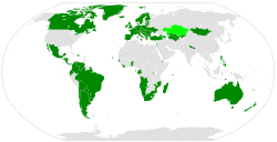The use of the death penalty is becoming increasingly restrained in some retentionist countries including Taiwan and Singapore.[64] Indonesia carried out no executions between November 2008 and March 2013.[65] Singapore, Japan and the United States are the only developed countries that are classified by Amnesty International as 'retentionist' (South Korea is classified as 'abolitionist in practice').[66][67] Nearly all retentionist countries are situated in Asia, Africa and the Caribbean.[66] The only retentionist country in Europe is Belarus. The death penalty was overwhelmingly practised in poor and authoritarian states, which often employed the death penalty as a tool of political oppression. During the 1980s, the democratisation of Latin America swelled the ranks of abolitionist countries.