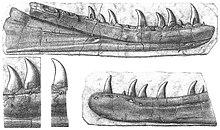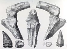 - ^ Newton, E.T. (1899). On a megalosaurid jaw from Rhaetic beds near Bridgend (Glamorganshire). Quarterly Journal of the Geological Society of London 55:89–96.
