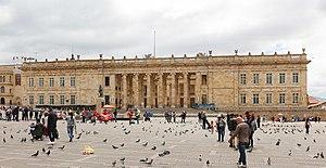 Capitolio Nacional (or National Capitol) is a building on Bolivar Square in central Bogotá, the construction of which began in 1848 and was finished in 1926. It houses both houses of the Congress of Colombia. It was designed by Thomas Reed.