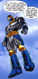 - Major Force (Clifford Zmeck): A rapist/murderer exposed to the same experiment that created Captain Atom, he'd regularly betray the US government or go back to work for their more clandestine i.e. crooked organizations. Becoming a regular as Captain Atom's Post-Crisis nemesis.