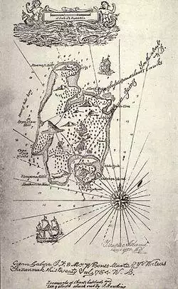 Captain Flint is a fictional character in the book Treasure Island, created by Robert Louis Stevenson in 1883.[1] In Stevenson's book, Flint, whose first name is not given, was the captain of a pirate ship, The Walrus, which accumulated an enormous amount of captured treasure, approximately £700,000. Flint and six members of his crew bury the plunder on an island located somewhere in the Caribbean Sea. Flint then murders his six assistants, leaving the corpse of one, Allardyce, with its arms outstretched in the direction of the buried treasure.