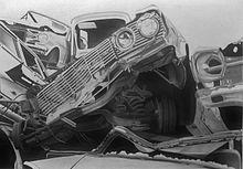 Some crashes are intended; staged crashes, for example, involve at least one party who hopes to crash a vehicle in order to submit lucrative claims to an insurance company.[28] In the United States during the 1990s, criminals recruited Latin American immigrants to deliberately crash cars, usually by cutting in front of another car and slamming on the brakes. It was an illegal and risky job, and they were typically paid only $100. Jose Luis Lopez Perez, a staged crash driver, died after one such maneuver, leading to an investigation that uncovered the increasing frequency of this type of crash.[29]