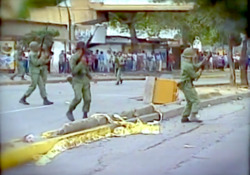 By the time authorities encountered the scenes of rioting, citizens began firing weapons at officers, with the ensuing firefights resulting in many bystanders being killed by "bullets from army troops and from sniping protesters."[1][2] In many poor areas, citizens destroyed their own local commercial facilities, with food markets so damaged that their food distribution system was ruined.[1] Much of the rioters destroyed properties indiscriminately, with no motives related to initial protests.[1] According to Amnesty International, tactics used by security forces included "disappearances," the use of torture, and extrajudicial killings.[7] As part of the government's security forces, members of Hugo Chávez's MBR-200 allegedly participated in the crackdown.[16] Chávez himself was sick that day with measles.[17] As tensions eased, troops began to sweep through neighborhoods collecting appliances and cash registers and informing citizens that if they provided a certificate of purchase, the items would be returned.[1]