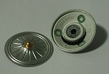 Carbon microphones can be used as amplifiers.[9] This capability was used in early telephone repeaters, making long distance phone calls possible in the era before vacuum tube amplifiers. In these repeaters, a magnetic telephone receiver (an electrical-to-mechanical transducer) was mechanically coupled to a carbon microphone. Because a carbon microphone works by varying a current passed through it, instead of generating a signal voltage as with most other microphone types, this arrangement could be used to boost weak signals and send them down the line. These amplifiers were mostly abandoned with the development of vacuum tubes, which offered higher gain and better sound quality. Even after vacuum tubes were in common use, carbon amplifiers continued to be used during the 1930s in portable audio equipment such as hearing aids. The Western Electric 65A carbon amplifier was 1.2" in diameter and 0.4" high and weighed less than 1.4 ounces.[10] Such carbon amplifiers did not require the heavy bulky batteries and power supplies used by vacuum tube amplifiers. By the 1950s, carbon amplifiers for hearing aids had been replaced by miniature vacuum tubes (only to be shortly replaced by transistors). However, carbon amplifiers are still being produced and sold.[11]