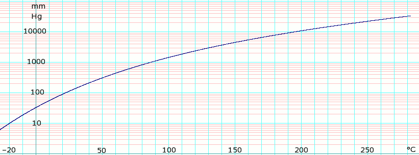 | T in °C | –50.0(s) | –19.6 | 4.3 | 23.0 | 57.8 | 76.7 | 102.0 | 141.7 | 178.0 | 222.0 | 276.0 | — | |