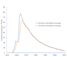 C in the atmosphere, which reached a maximum in about 1965 of almost double the amount present in the atmosphere prior to nuclear testing.