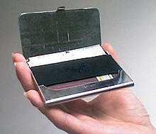 A card enclosure is a container for smart cards, credit cards, debit cards, telephone cards, visiting cards, business cards and other cards of similar size. Most cards have dimensions that follow the ID-1 format of the ISO/IEC 7810 standard which specify the physical dimensions for cards to be 85.60 × 53.98 mm. The enclosures can be made of metal, leather, or plastic and come in various colors and designs. Sometimes having a laser engraved design for aesthetic purposes.