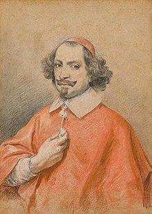 Cardinal Jules Mazarin (/ˈmæzərɪn/,[1] also UK: /ˈmæzəræ̃/,[2] US: /ˌmæzəˈræ̃/,[3][4] French: [ʒyl mazaʁɛ̃]; 14 July 1602 – 9 March 1661), born Giulio Raimondo Mazzarino (Italian: [ˈdʒuːljo raiˈmondo madːzaˈriːno]) or Mazarini,[5] was an Italian cardinal, diplomat, and politician who served as the chief minister to the kings of France Louis XIII and Louis XIV from 1642 until his death in 1661. In 1654 he acquired the title Duke of Mayenne, and in 1659, 1st Duke of Rethel and Nevers.