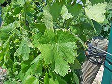 The popularity of Carignan was largely tied to its ability to produce very large yields in the range of 200 hl/ha (11 tons/acre). The vine does face significant viticultural hazards with significant sensitivity to several viticultural hazards including rot, powdery mildew, downy mildew, and grape worms. Carignan is a late budding and ripening grape which requires a warm climate in order to achieve full physiological ripeness.[2] The vine also develops very thick stalk around the grape clusters which makes mechanical harvesting difficult. It has an upright growth habit and can be grown without a trellis.[4]