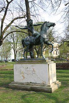 Only the monumental entrance gates, a few foundation structures, and decorative stones remain from the building. A bronze statue by Franz von Stuck, Kämpfende Amazone (1897), once at Carinhall, is now at Eberswalde. Another statue, Kronenhirsch by Johannes Darsow, can be found at Tierpark Berlin in the district of Friedrichsfelde.