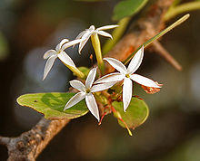 Carissa is a genus of shrubs or small trees native to tropical and subtropical regions of Africa, Australia and Asia. Until recently about 100 species were listed, but most of them have been relegated to the status of synonyms or assigned to other genera, such as Acokanthera.[2][3]